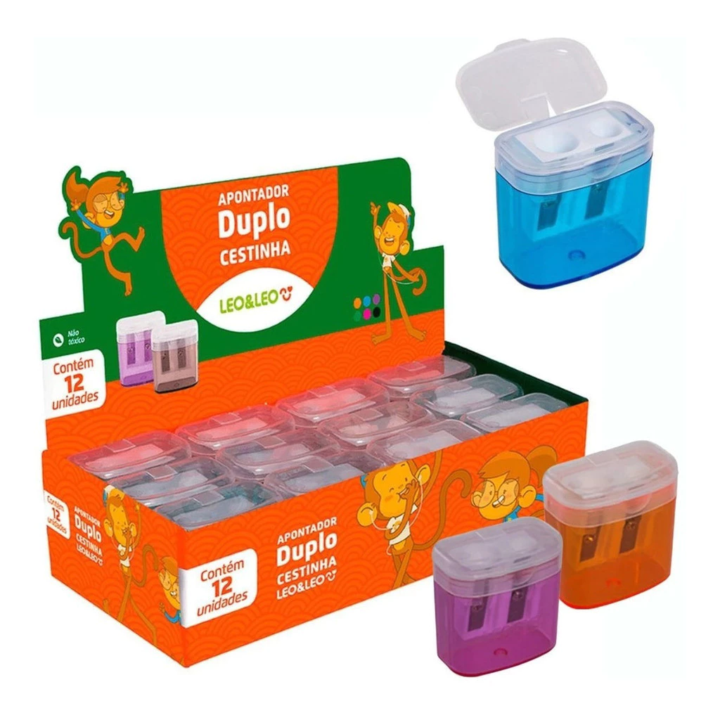 Apontador Duplo C/ Deposito Leo&Leo – Caixa com 12 Unidades